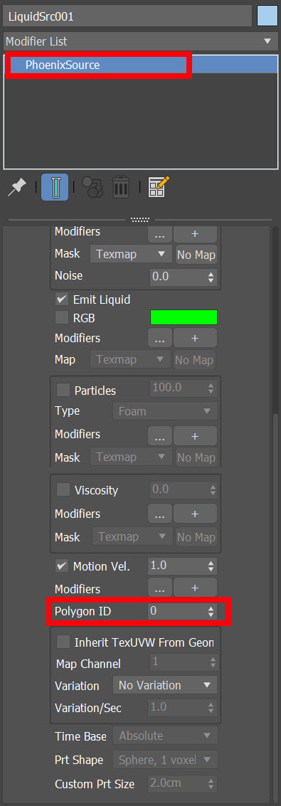 폴리곤 오브젝트에서 폴리곤 ID를 설정하고 시뮬레이션 소스(PhoenixSource)에서 polygon ID를 설정합니다.