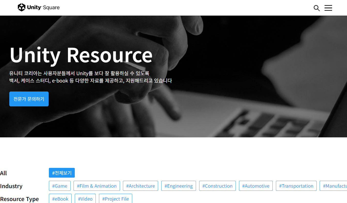 아래 웹사이트(Unity Square)에서 유니티에서 제공하는 다양한 리소스 자료(백서, 케이스 스터디, e-book, 기타)를 다운로드할수있습니다.