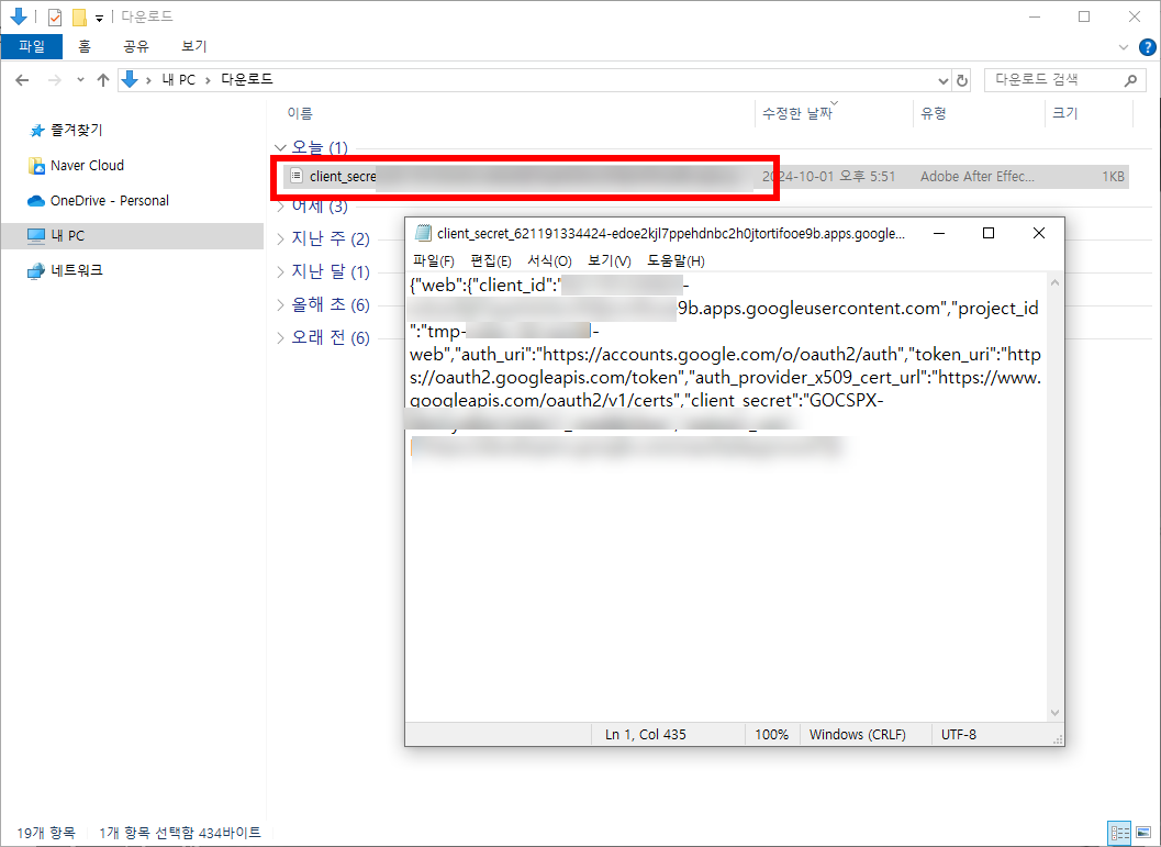 25)JSON 형식의 클라이언트 보안 비밀번호를 다운로드합니다.