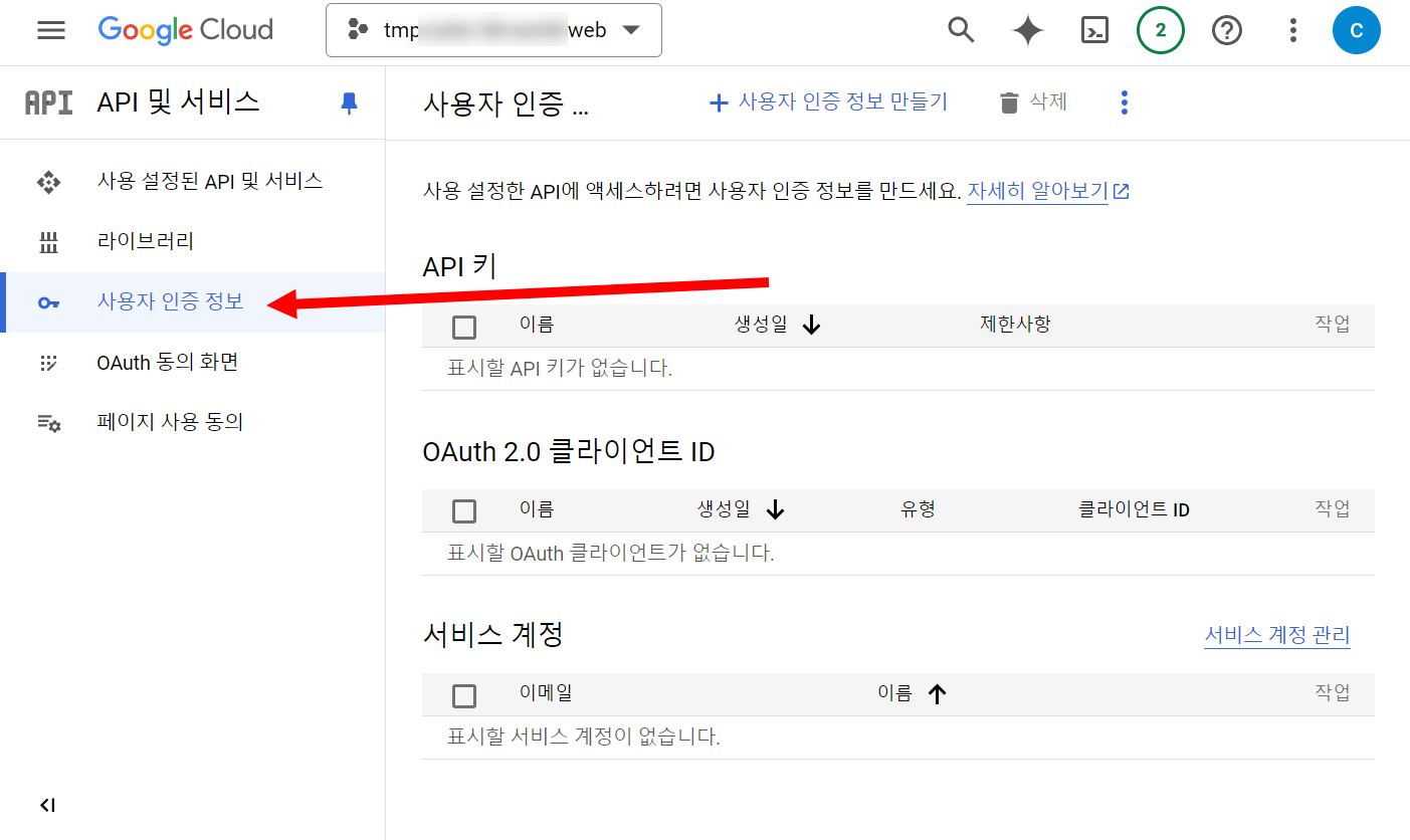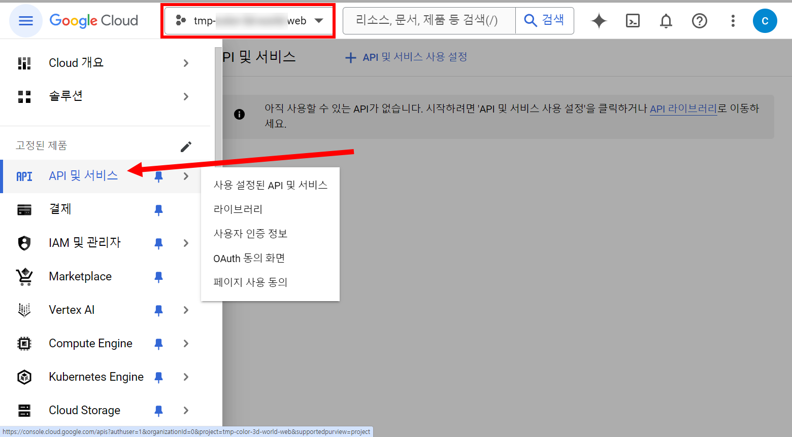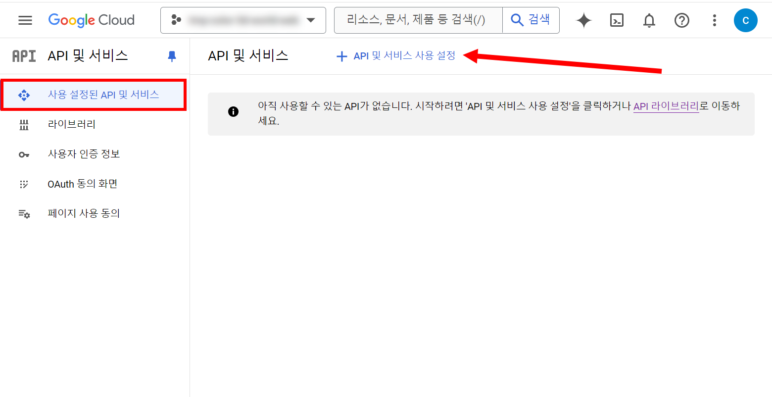 6)API 및 서비스 사용 설정으로 이동합니다.