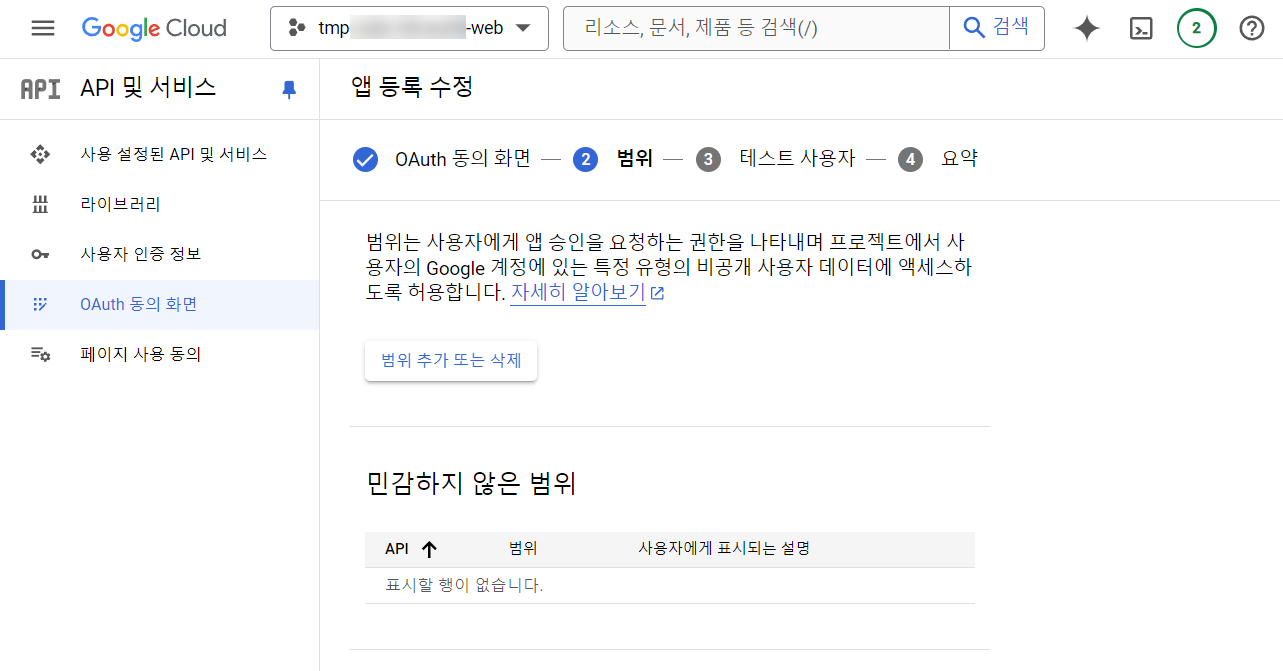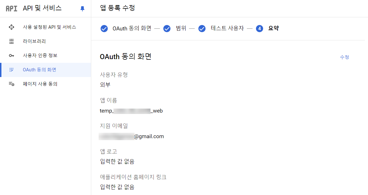14)최종적으로 OAuth 동의 화면 등록 정보를 확인합니다.