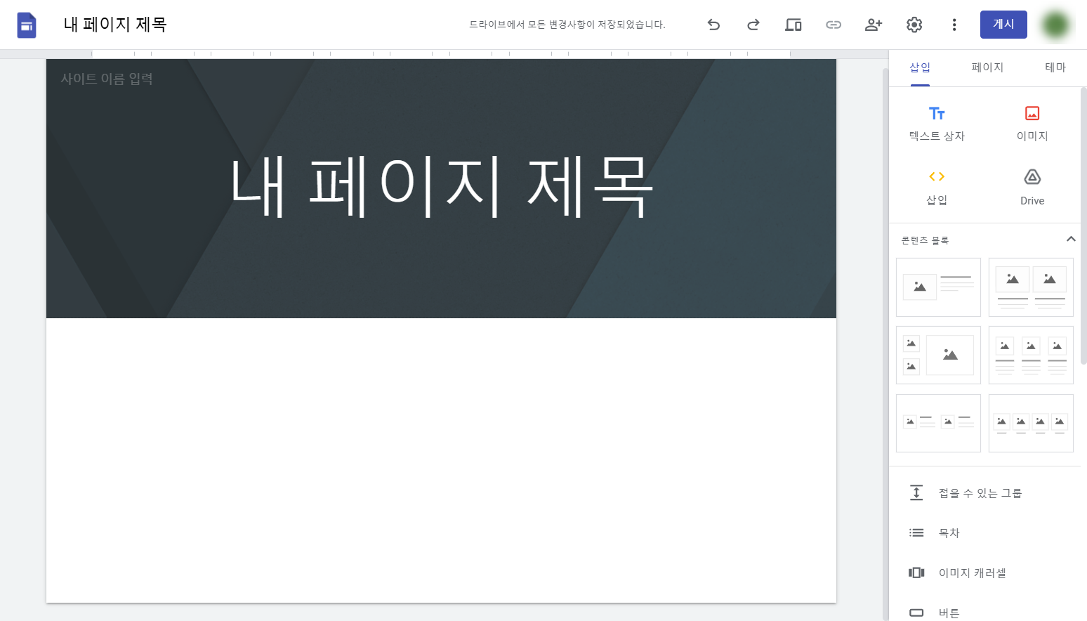 개인정보처리방침 사이트 만들기(구글드라이브의 사이트 도구를 이용한 방법)