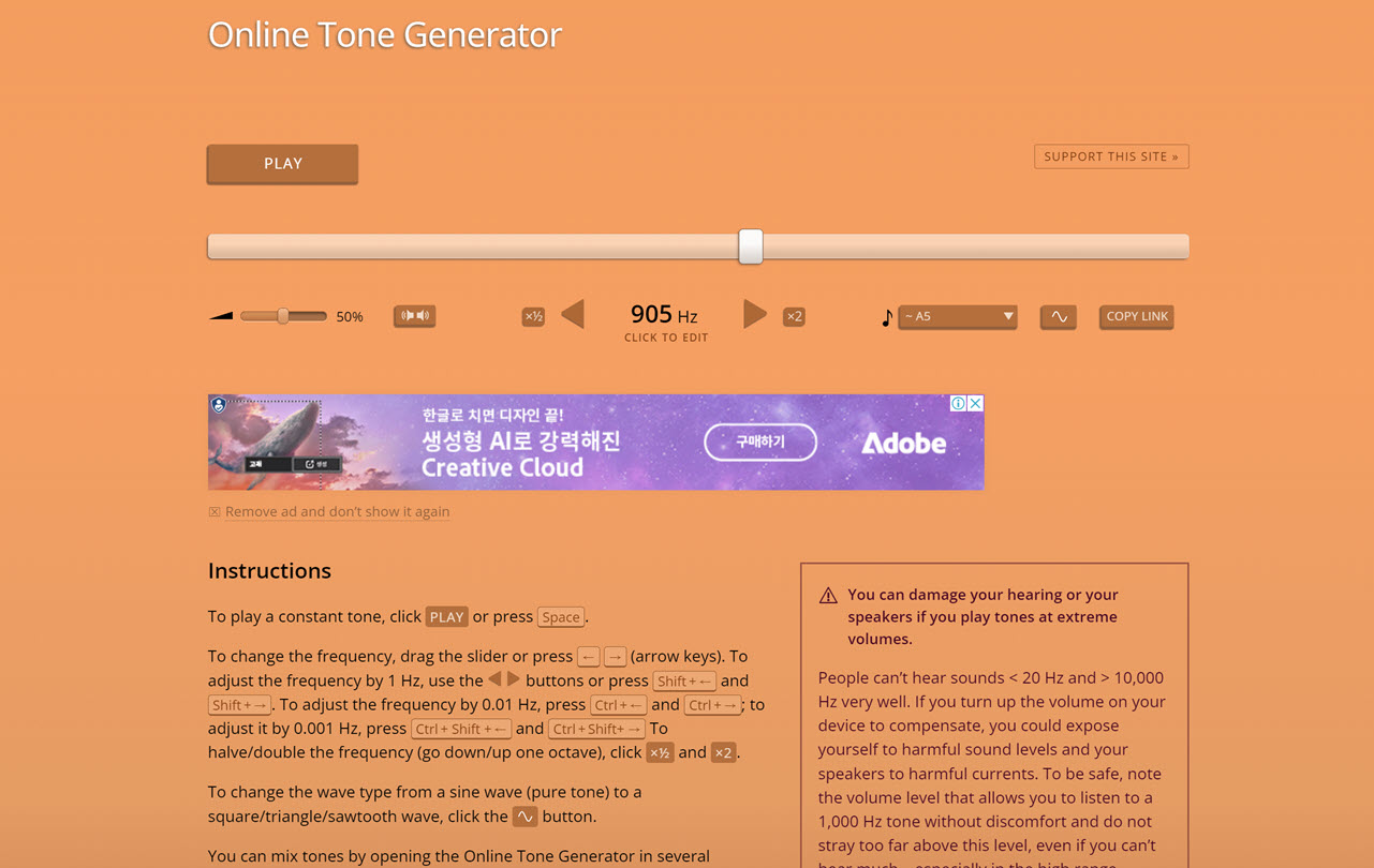 주파수 생성기 웹 사이트 및 프로그램 종류(Tone Generator)
