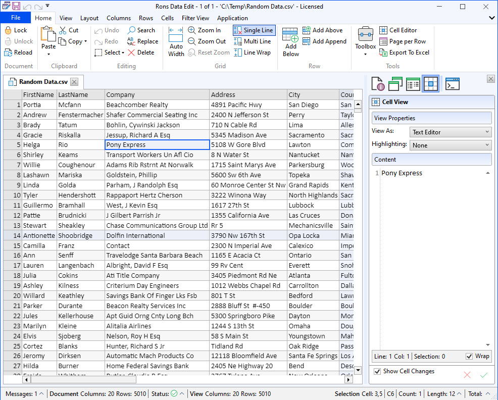 윈도우 CSV 파일 편집기 Rons Data Edit(Rons CSV Editor)