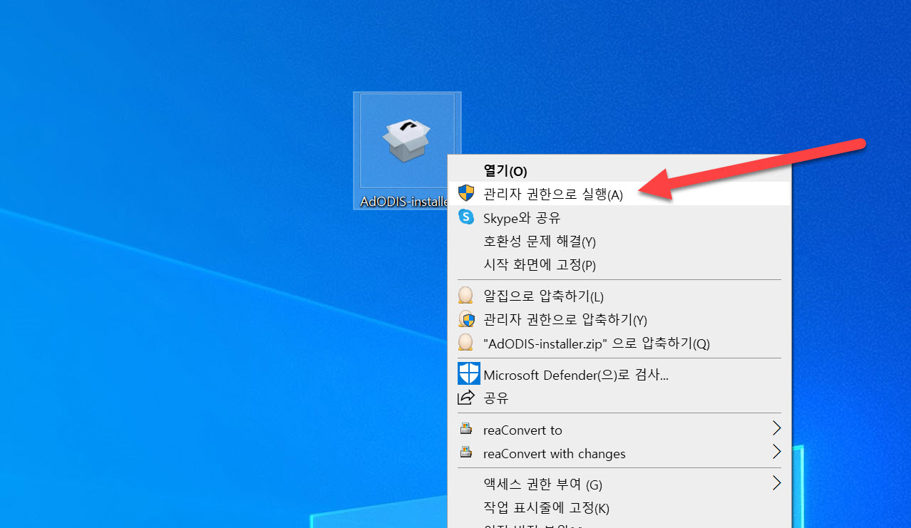 6)다운로드한 설치 프로그램을 관리자 권한으로 실행합니다.