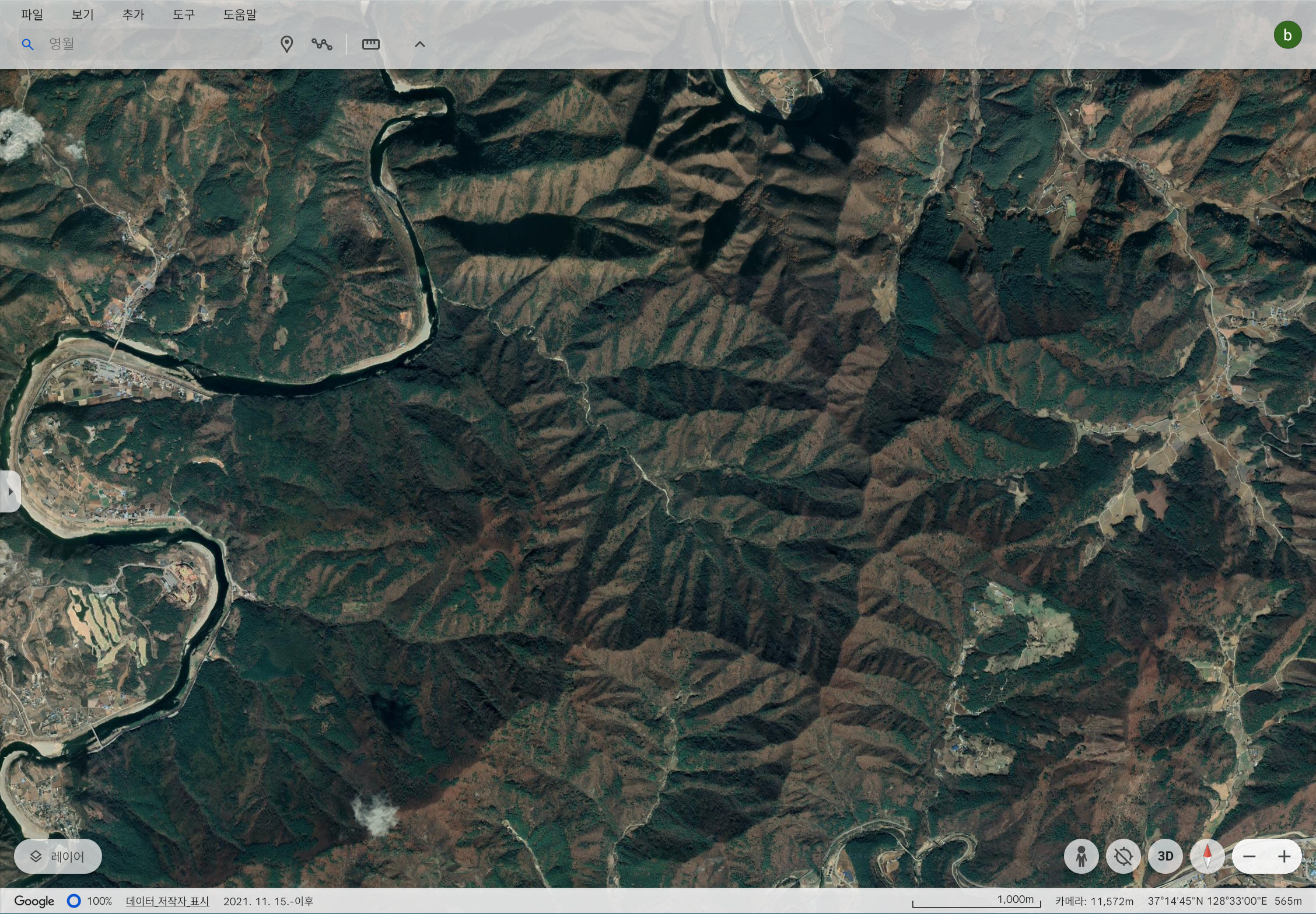 1)구글어스에서 위성 사진을 이미지로 저장할 장소로 이동합니다.