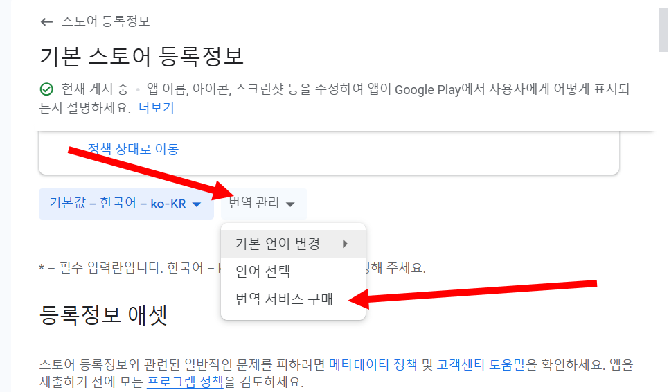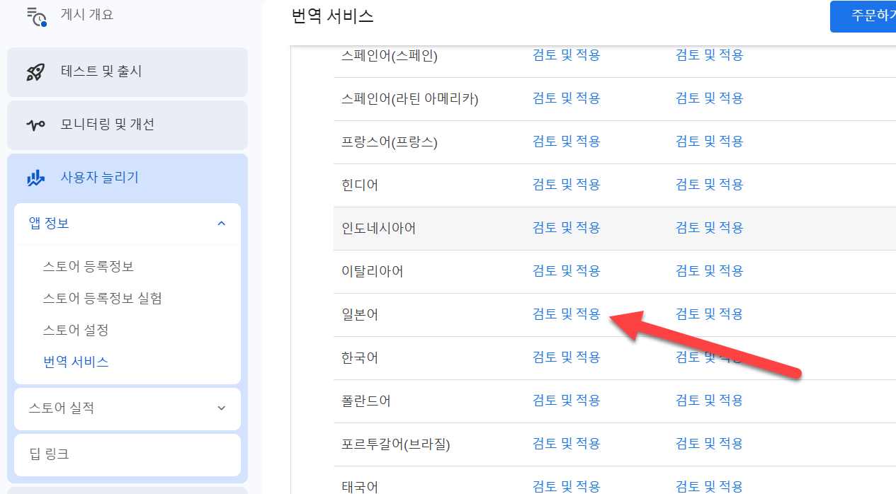 구글 플레이 콘솔에서 국가별 언어 무료 번역 서비스 사용하기