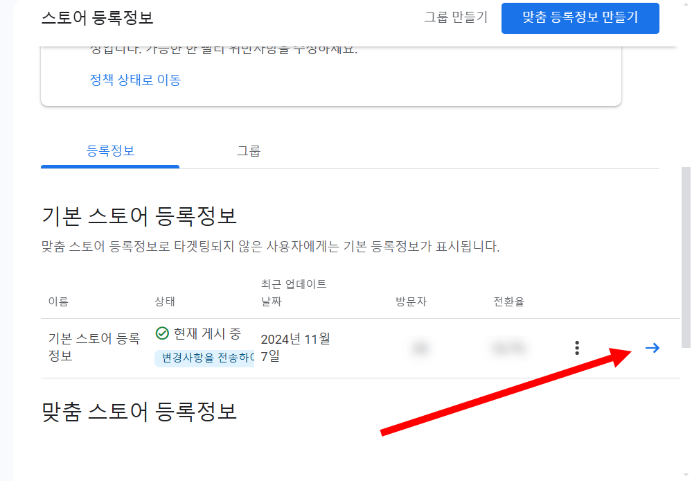 2)기본 스토어 등록정보로 이동합니다.