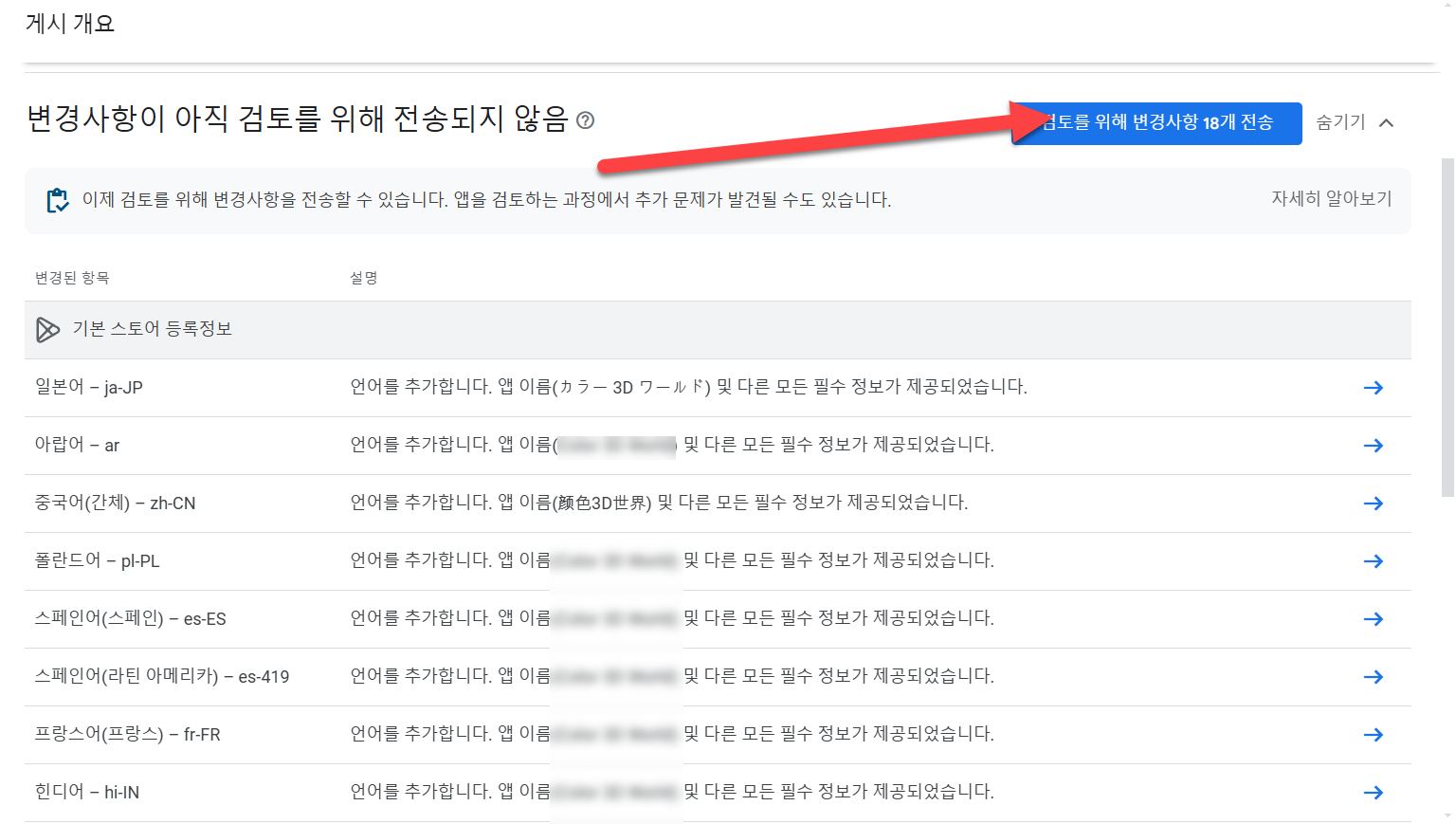 20)검토를 위해 변경사항을 전송합니다. 검토가 완료되면 구글 플레이 스토어에서 국가에 대해 번역한 언어를 표시합니다.