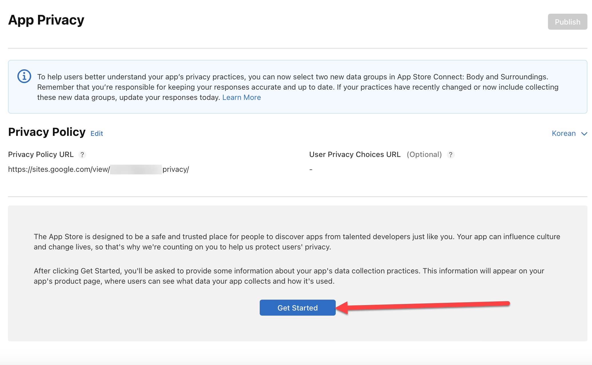 App Store Connect에서 iOS 앱 배포 - 개인정보 처리방침과 데이터 수집 여부 설정