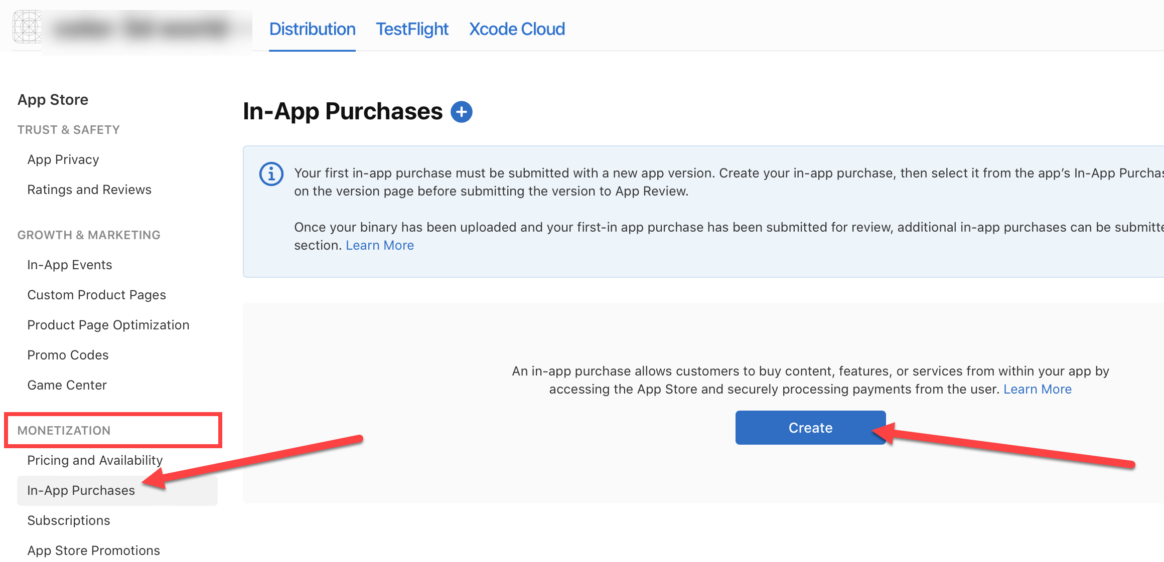 2)새로운 인앱 구매(In-App Purchases)를 생성합니다.