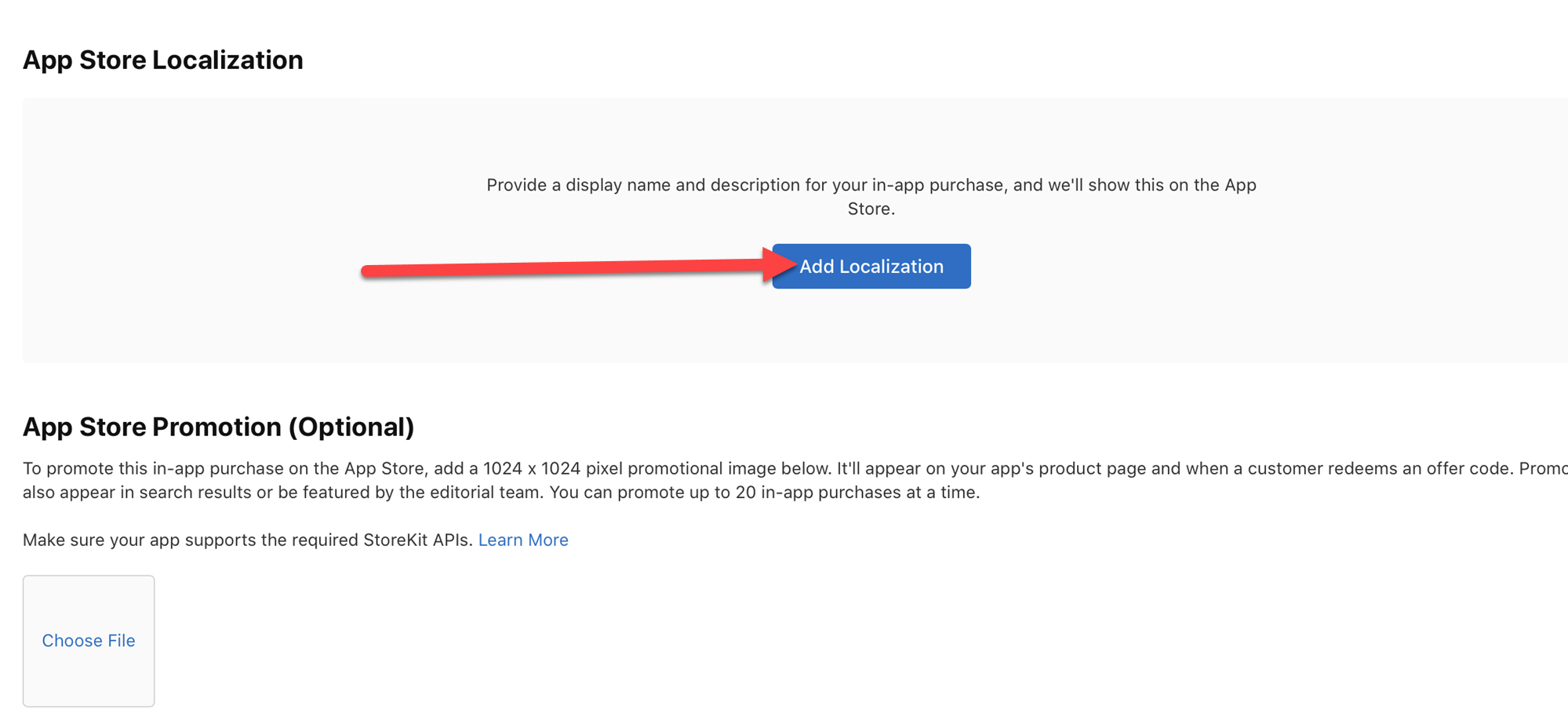 10)인앱구매의 앱스토어 지역화를 사용하려면 add localization(지역화 추가)로 이동합니다.