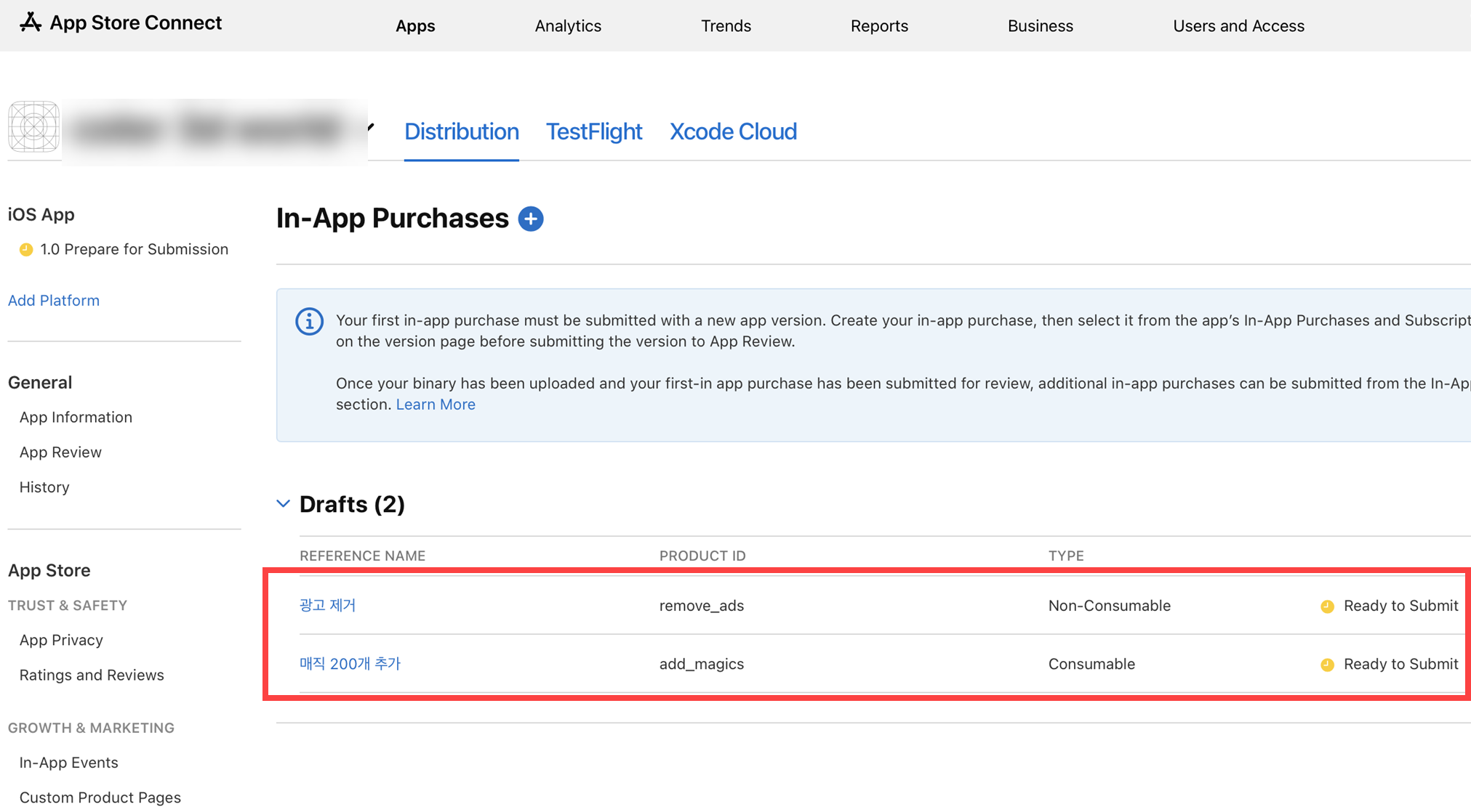 App Store Connect에서 iOS 앱 배포 - 인앱 구매(IAP, In-App Purchases) 만들기