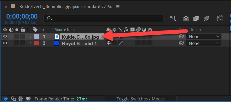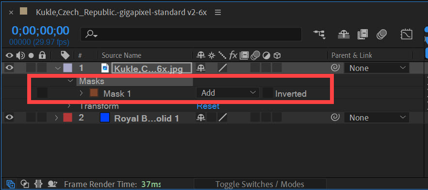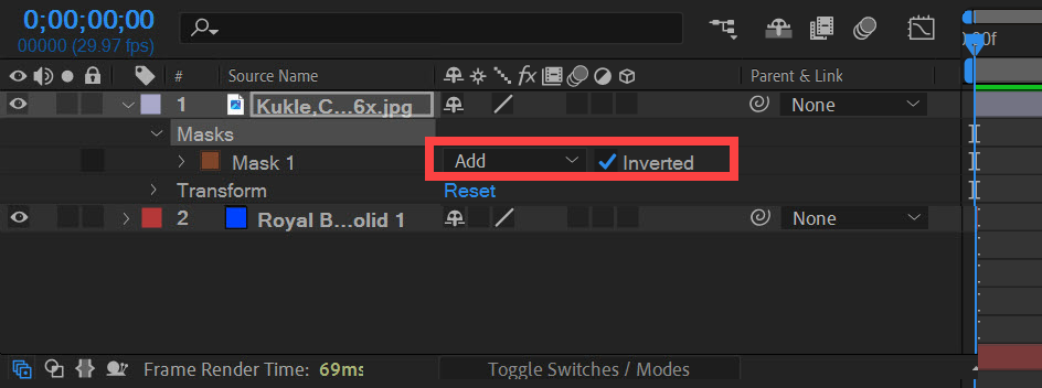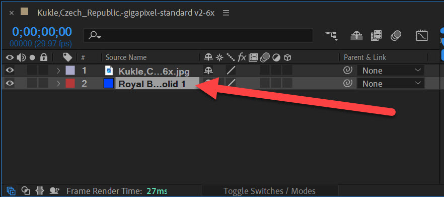 1)마스킹을 사용할 레이어 하위에 솔리드(Solid) 레이어를 생성합니다.
