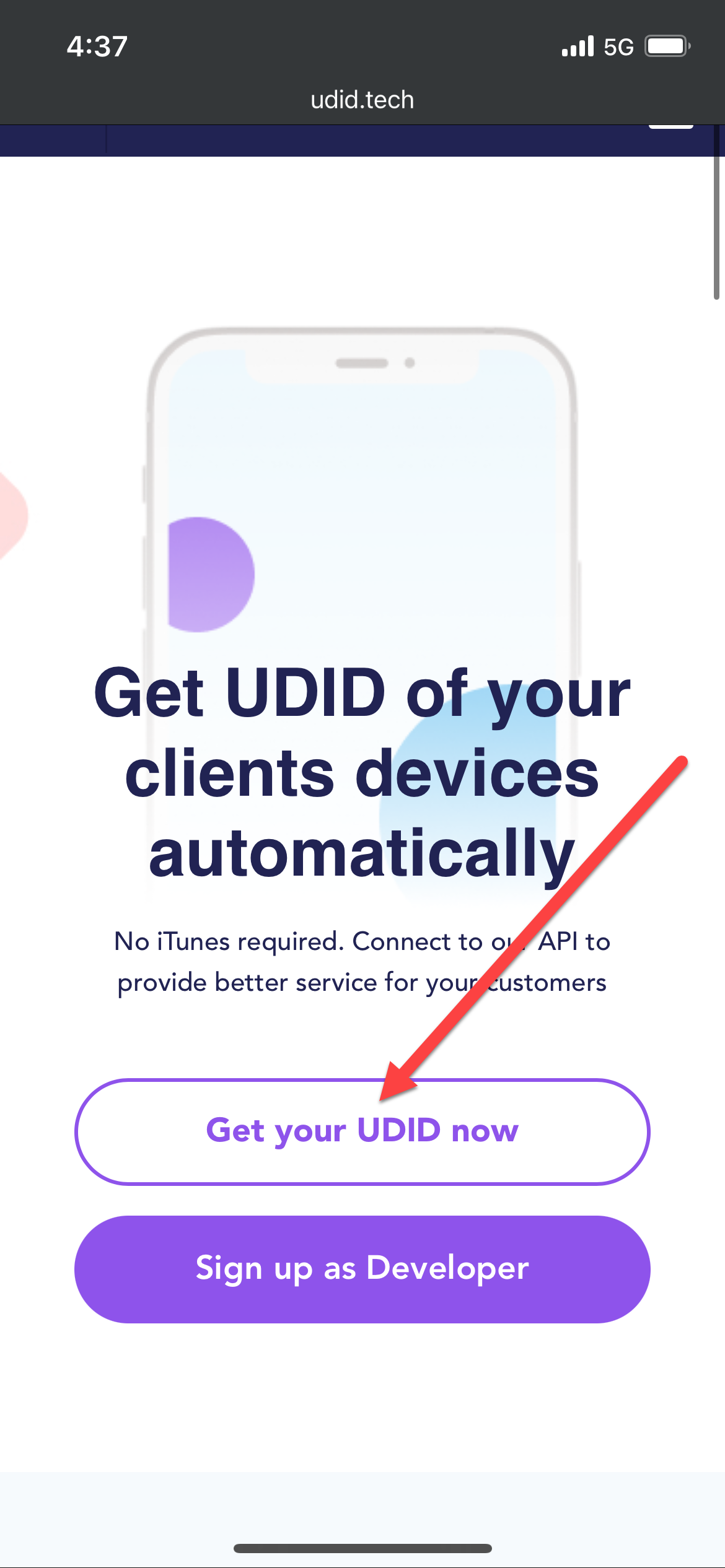 1)아이폰(iOS장치)에서 아래 웹사이트에 접속하고 Get your UDID now를 클릭합니다.