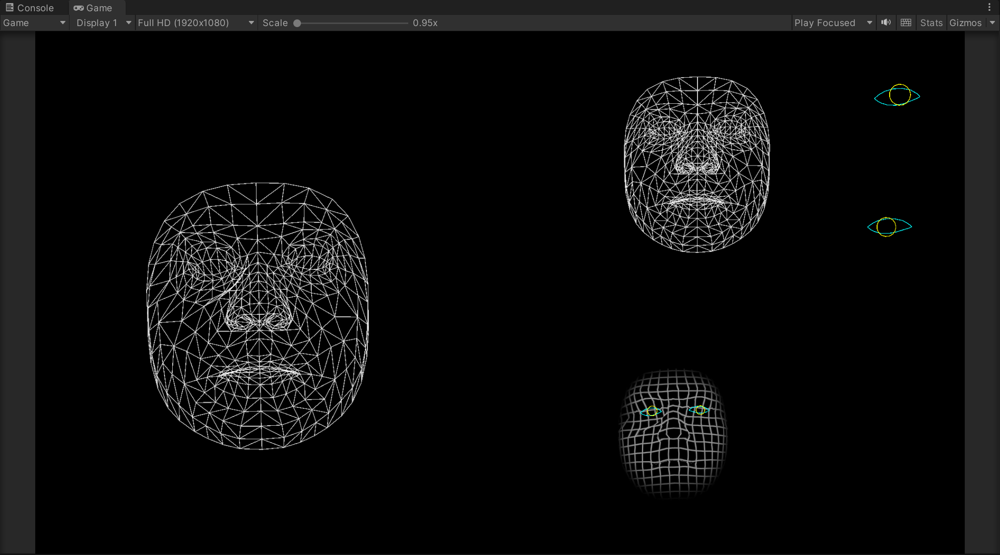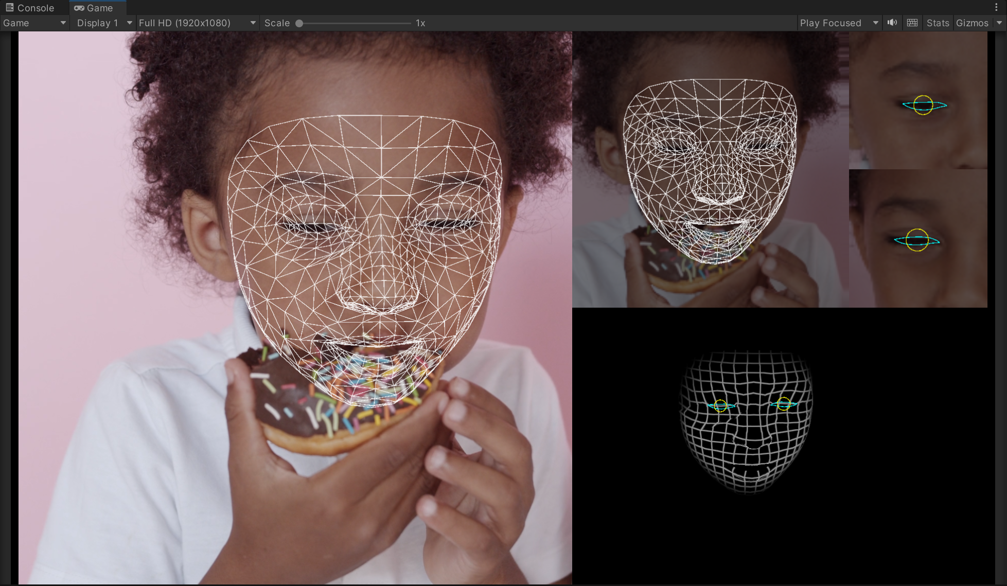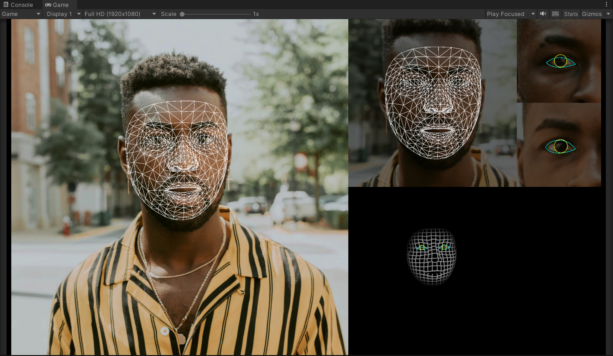 4)게임을 플레이하면 이미지 소스에서 인식한 사람의 얼굴을 추적하고 메시를 생성 및 업데이트합니다.
