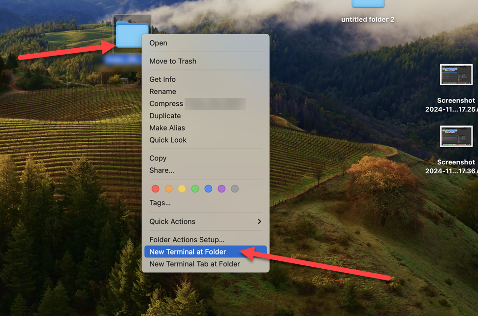 2)유니티 프로젝트 폴더에서 터미널을 열기합니다(New Terminal at Folder)