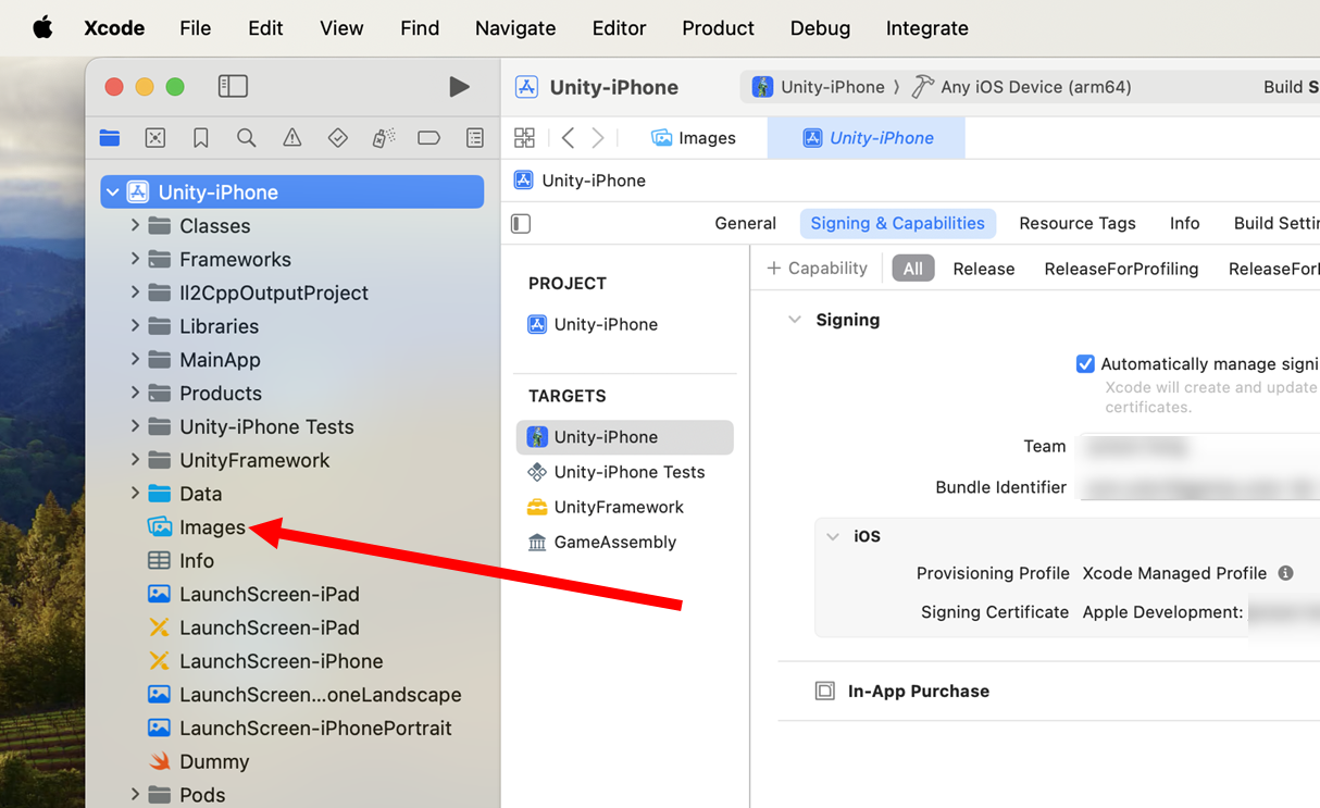 1)Xcode 프로젝트에서 Images를 선택합니다.
