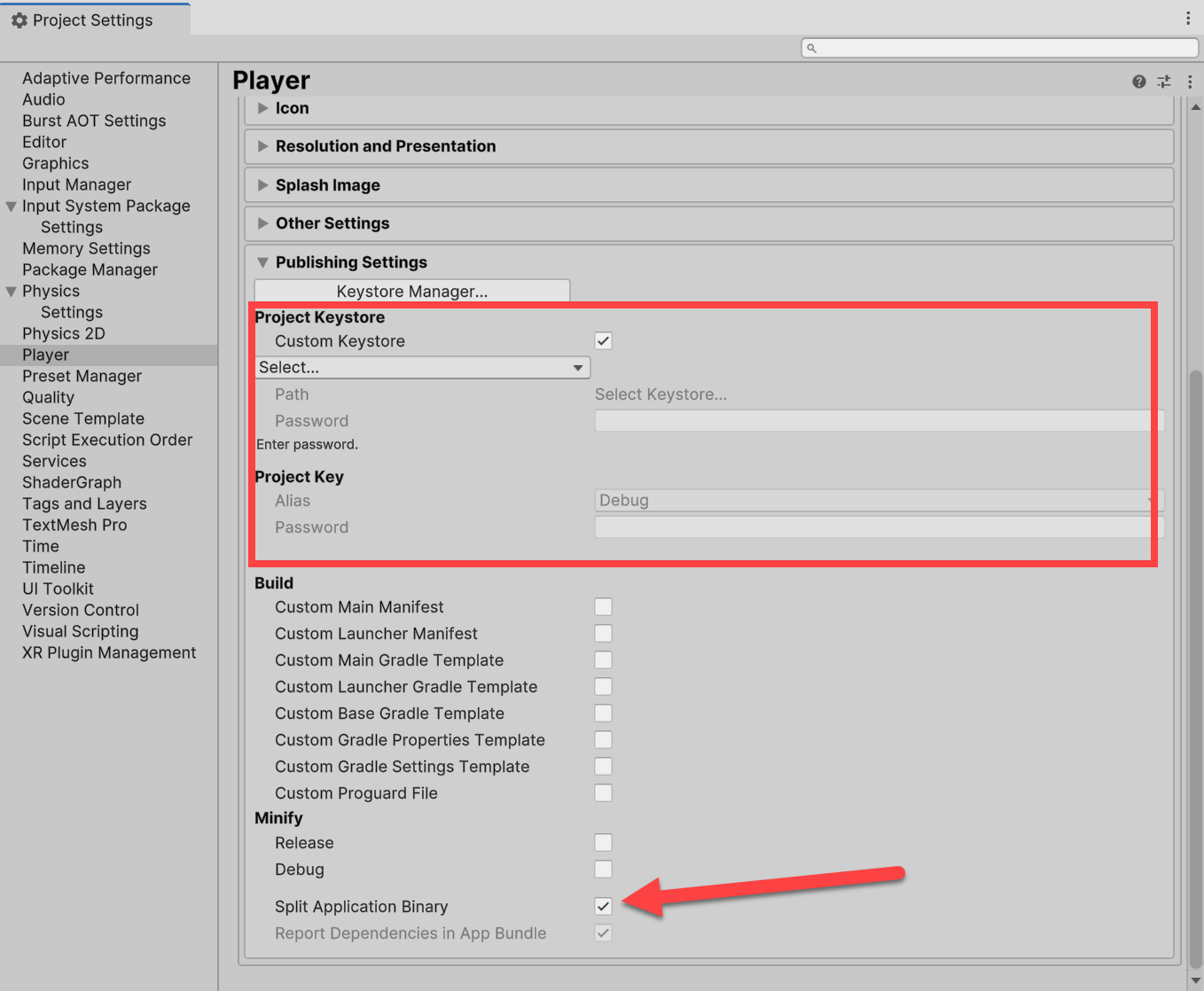 키스토어(Keystore) 설정, Split Application Binary