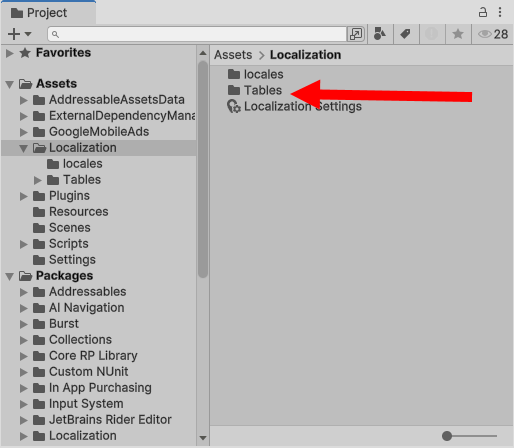 이전 프로젝트에서 사용하는 모든 지역화 테이블 복사(예를들어 Tables 폴더)