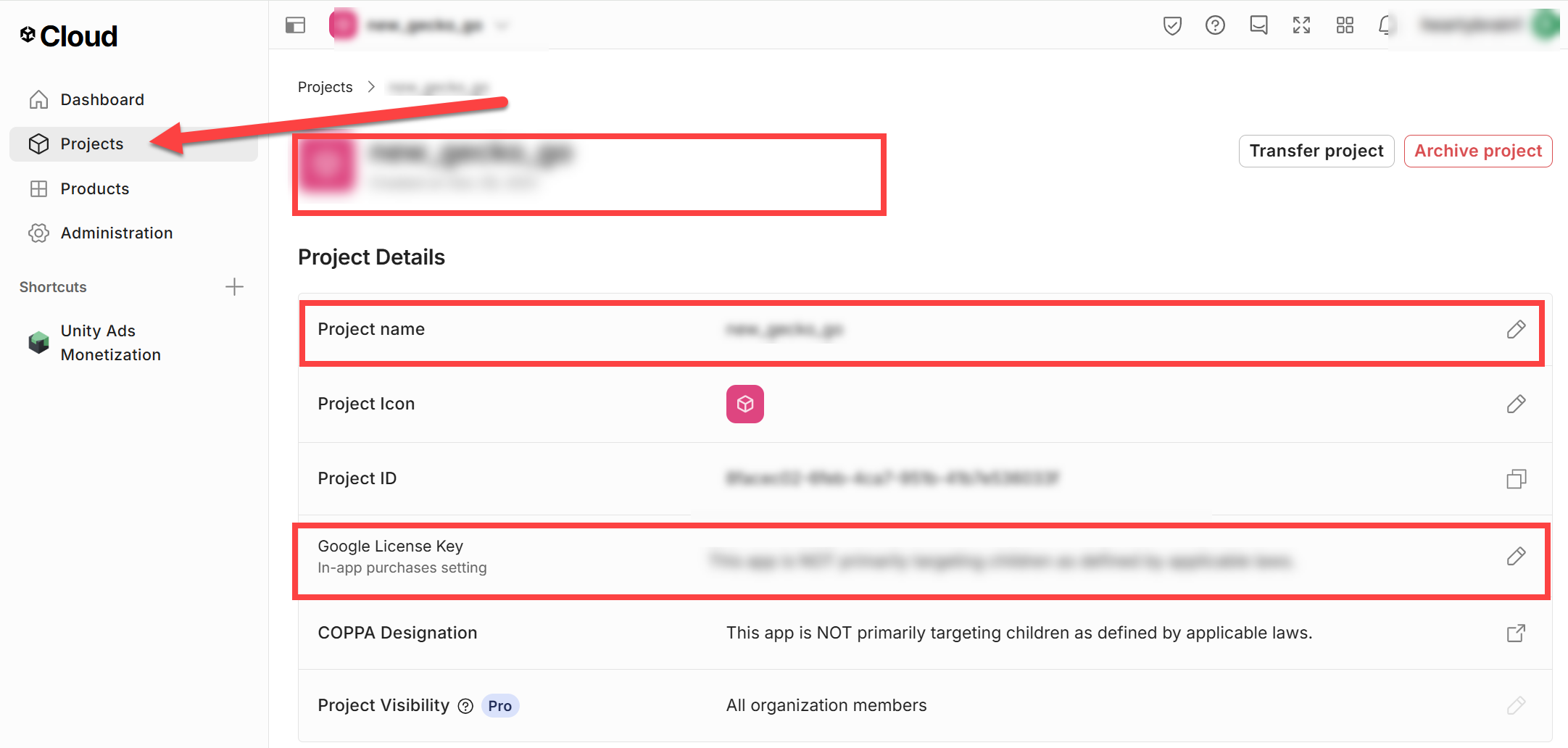 기존의 유니티 클라우드 프로젝트는 Cloud 웹사이트 Projects 페이지에서 확인