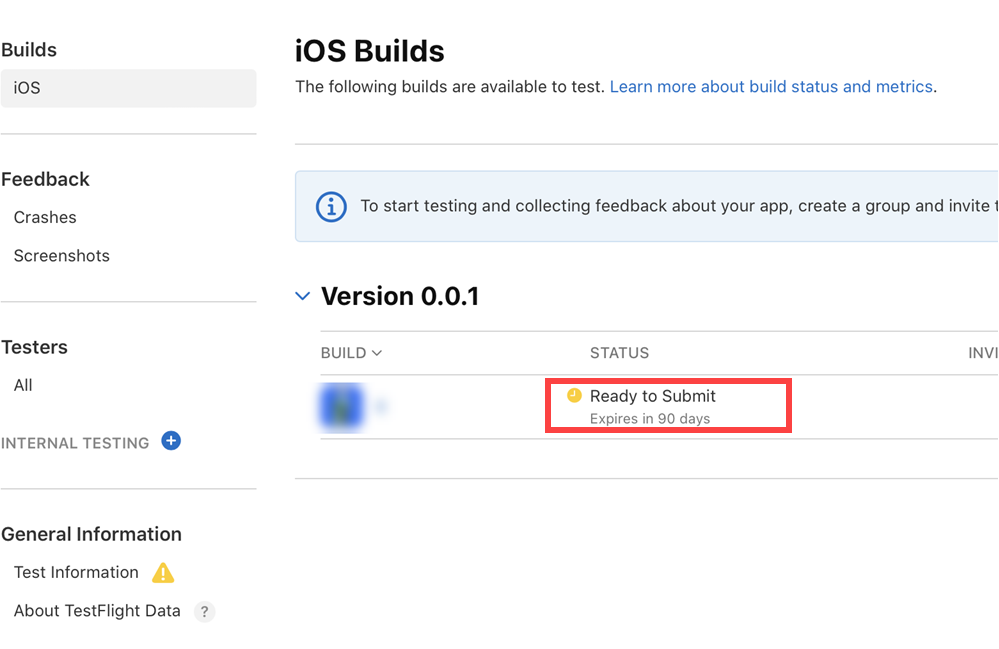 4)앱 상태가 Ready to Submit으로 변경되며 앱을 제출 및 업데이트할수있습니다.