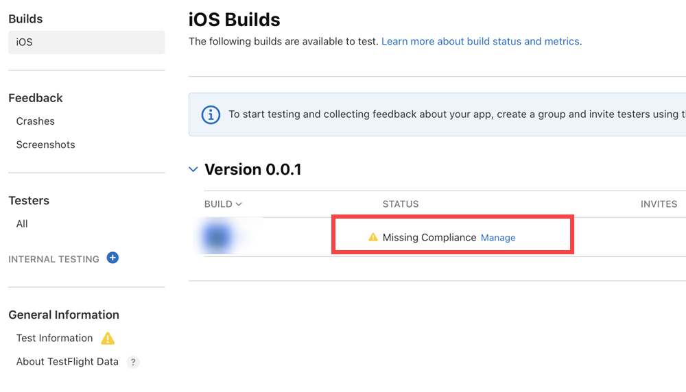 App Store Connect에서 앱 상태 Missing Compliance(수출 규정 관련 문서 누락)