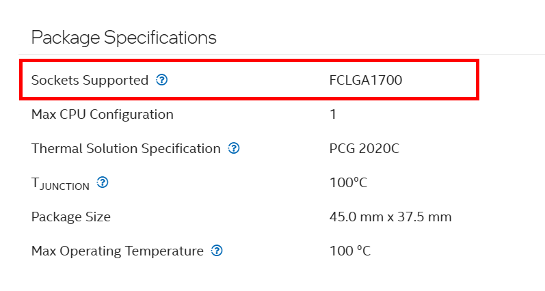 6)CPU 제품의 사양(Specifications)을 확인합니다.