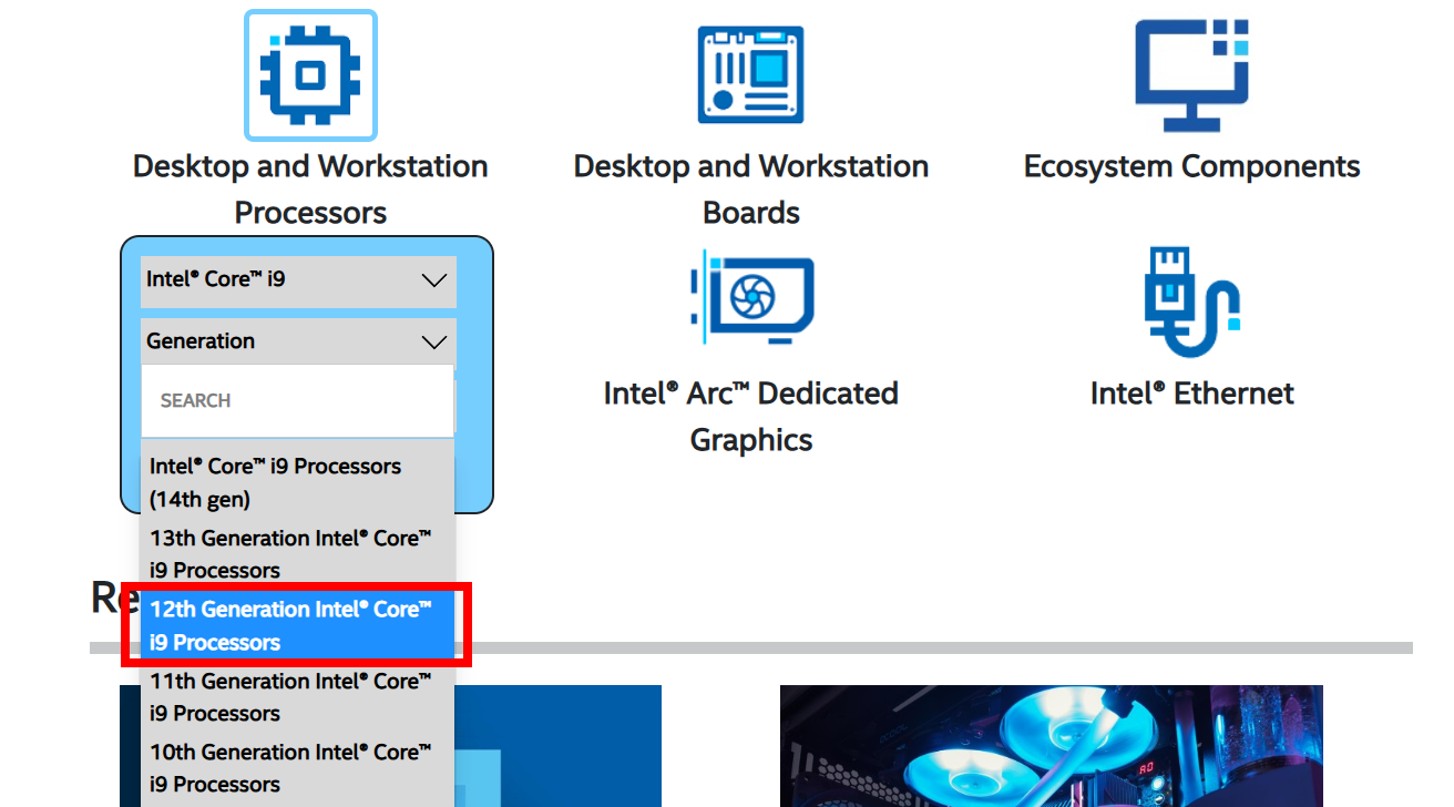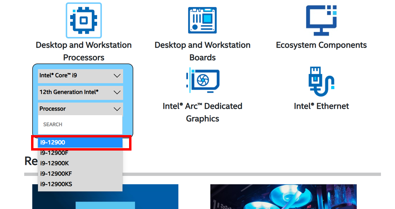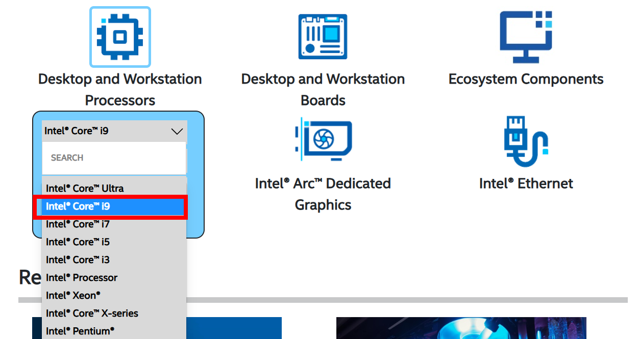 3)인텔 제품을 선택 및 검색합니다