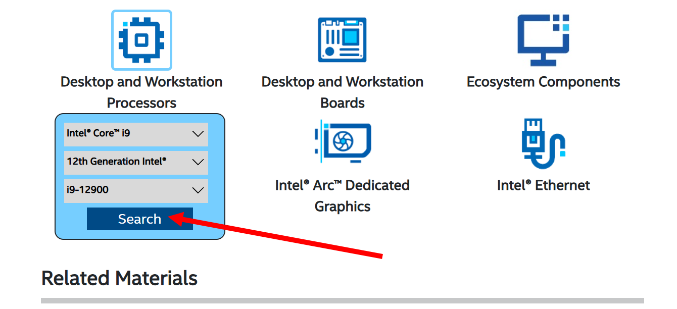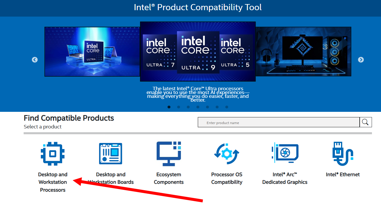 1)인텔 제품 호환성 도구 웹사이트로 이동합니다(Intel Product Compatibility Tool)