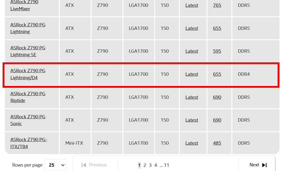 4)선택한 CPU와 호환가능한 모든 마더보드(Motherboards) 목록을 표시합니다.
