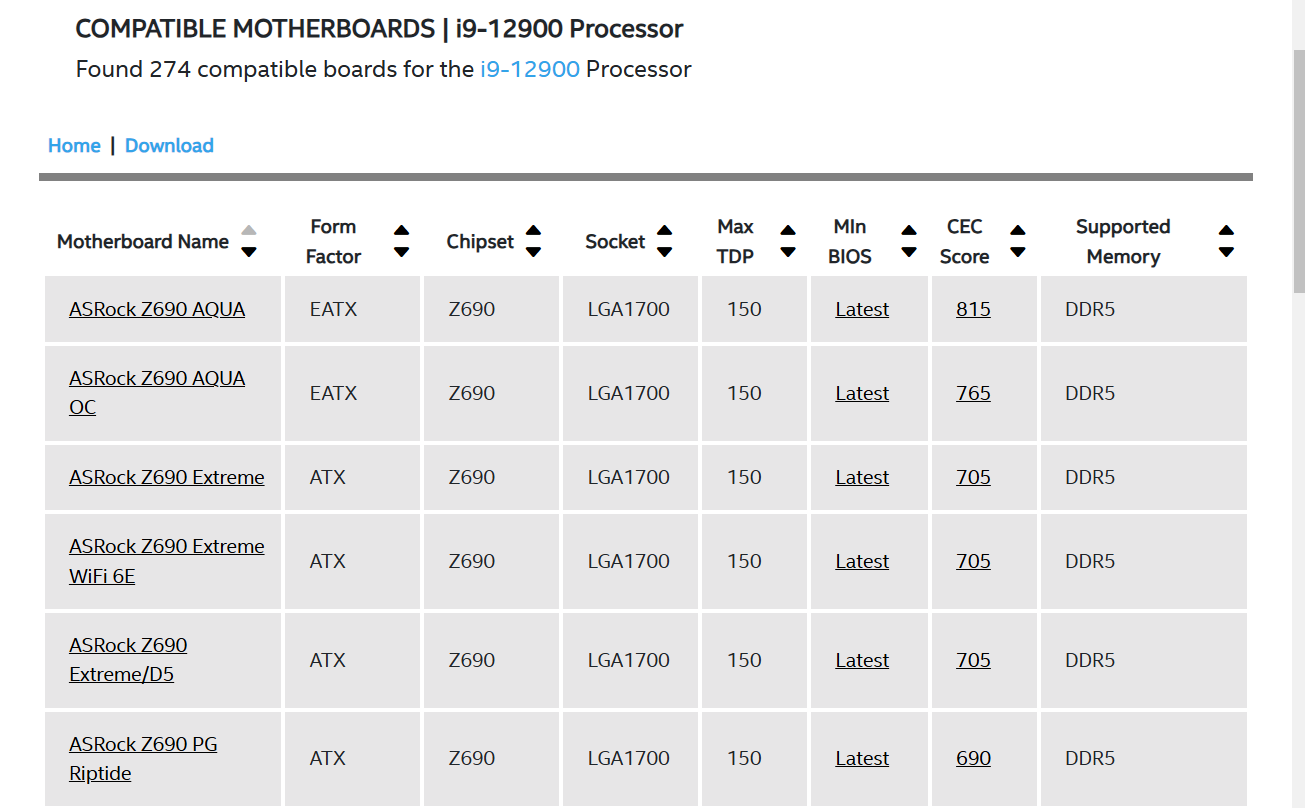 https://compatibleproducts.intel.com/