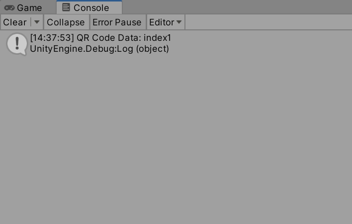 9)게임을 시작하면 QR 코드의 Raw Text 또는 URL를 문자열로 출력합니다.