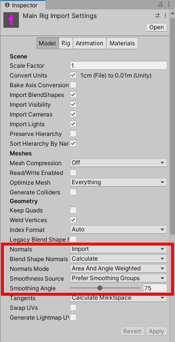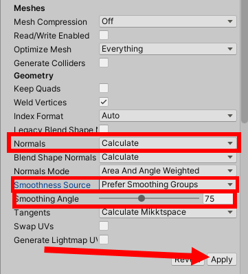 유니티(Unity)에 가져오기한 3D 모델 노말 계산(스무싱 그룹, Smoothing Angle)