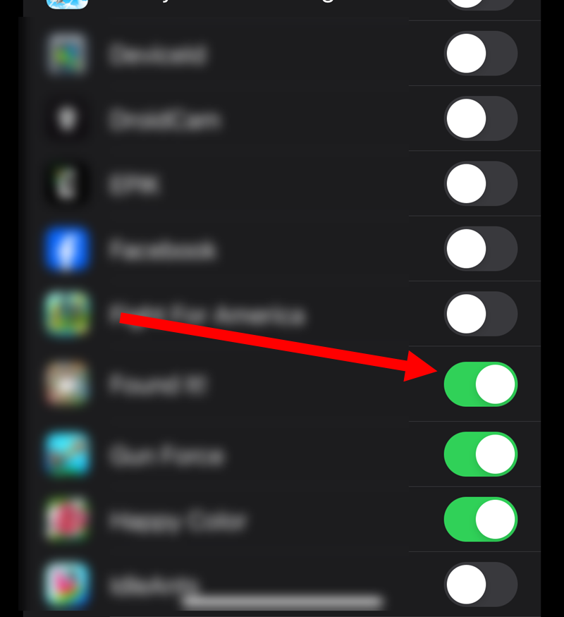 4)추적을 허용 또는 비허용할 앱에서 추적을 활성화 및 비활성화합니다.