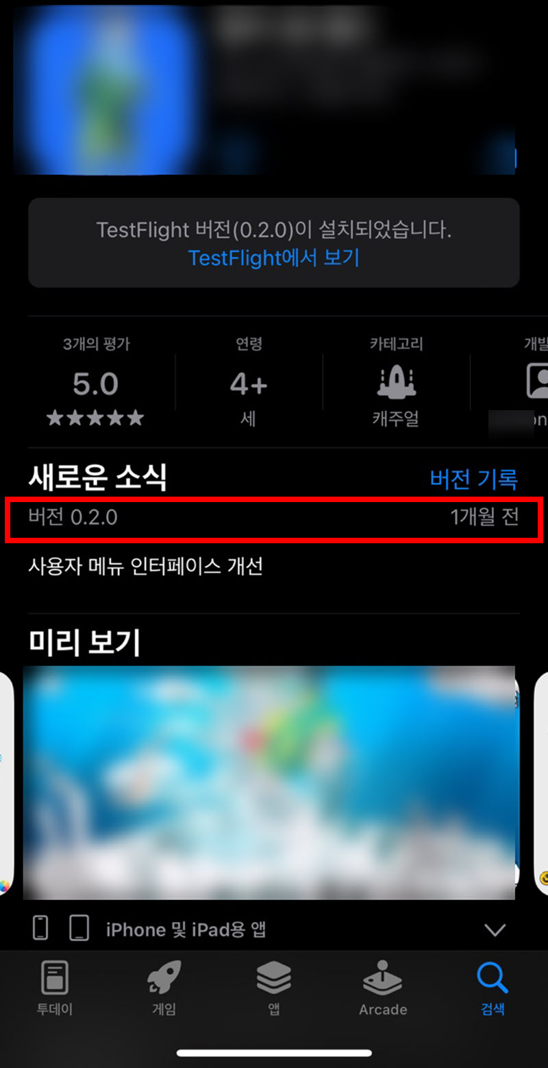 4)배포한 앱의 버전 번호는 앱스토어(App Store) 제품 페이지에서 사용자가 앱을 설치 또는 업데이트할때 표시됩니다.