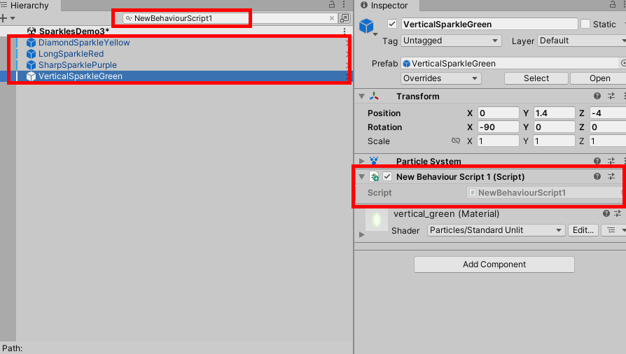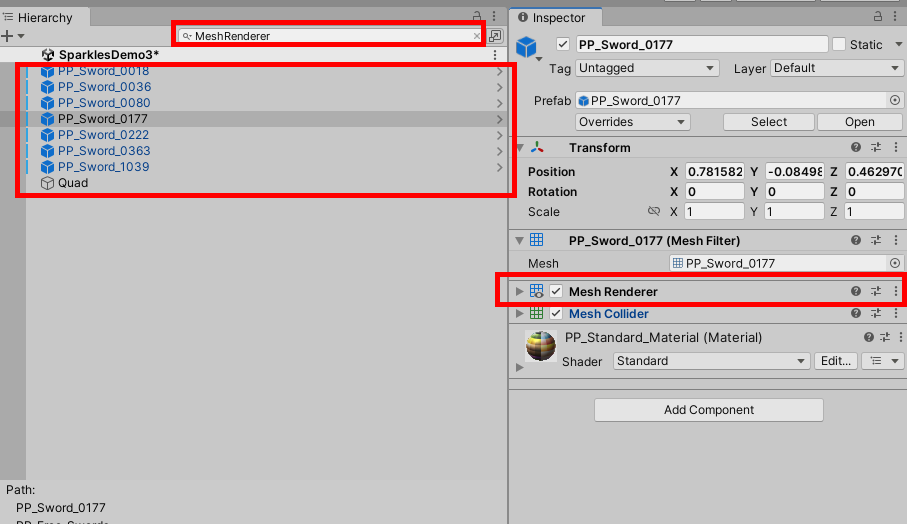 3)컴포넌트 또는 사용자 정의 스크립트 이름을 검색하면 해당 컴포넌트를 포함하는 오브젝트만 표시합니다.