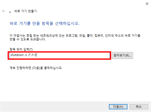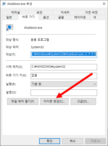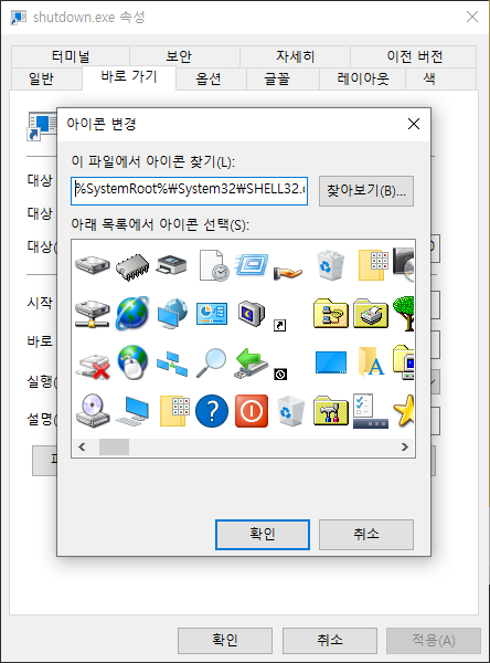 윈도우 10에서 시스템 종료(전원 끄기) 바로가기 아이콘 만들기