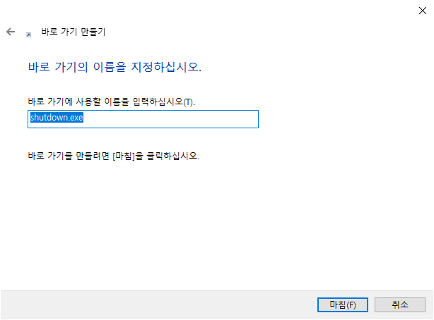 3)바로가기 이름을 입력히고 마침을 클릭합니다.