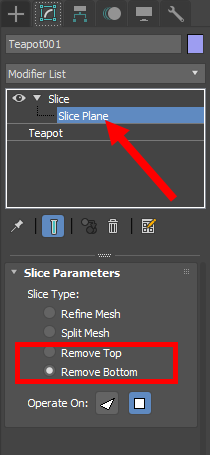 3)slice 수정자 하위의 slice plane를 선택하고 슬라이스 유형을 선택합니다.