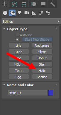 3D 맥스(Max)에서 나선형 오브젝트 모델링 예시(Helix)