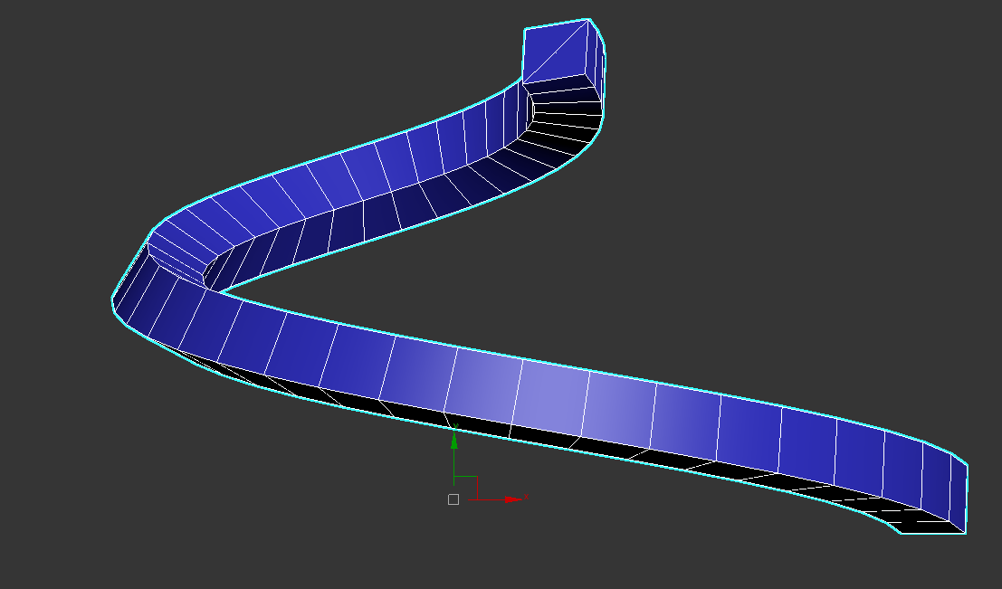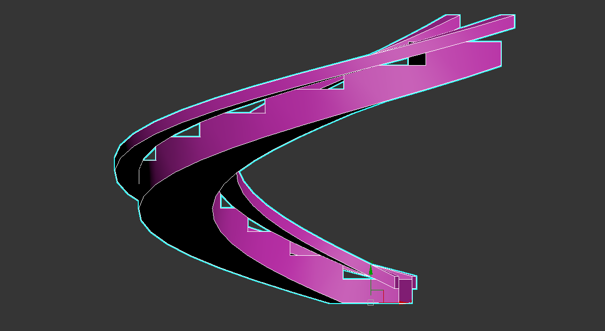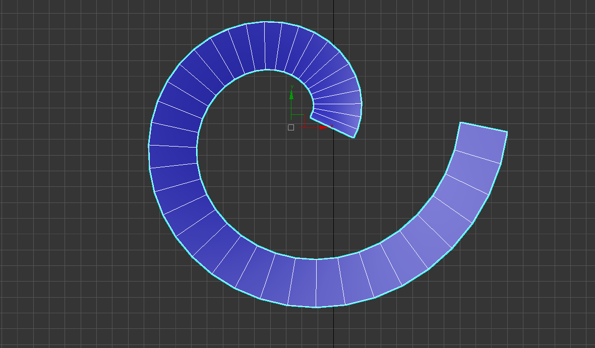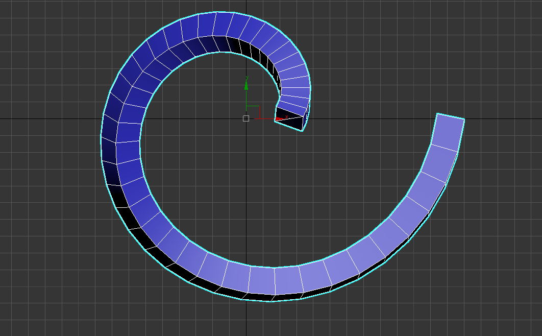 9)나선형 오브젝트의 단면이 기울어지지않고 지면과 수직인것을 확인할수있습니다.