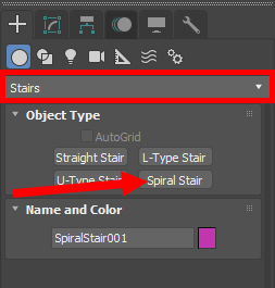 10)create의 geometry에서 stairs의 spiral stair(나선형 계단)을 선택 및 생성합니다.