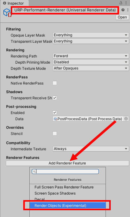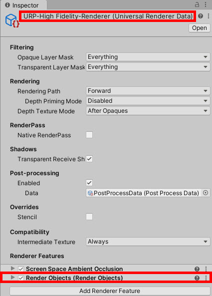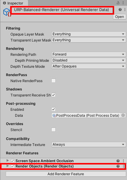 유니티(Unity) 모든 대상 플랫폼에 대하여 렌더러 기능 추가 및 속성 설정 참고