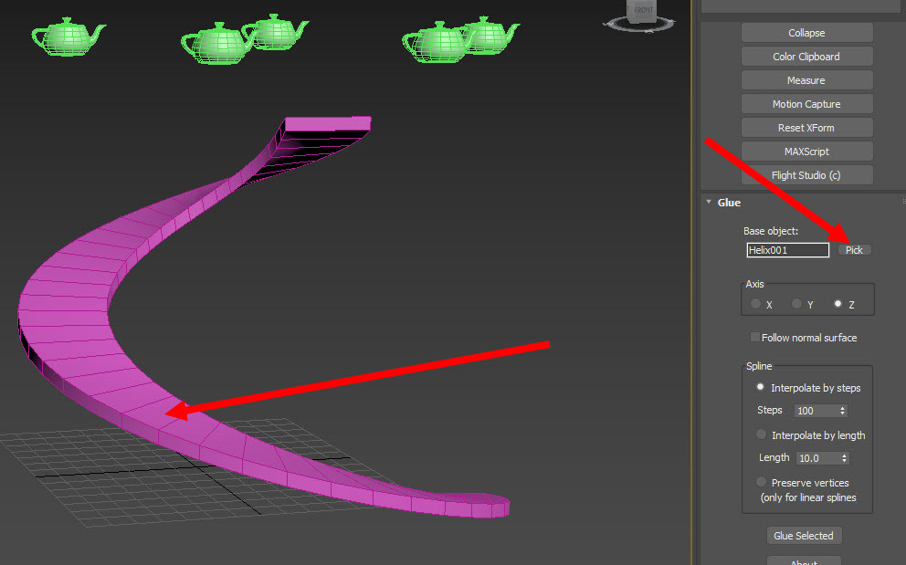 3D 맥스 스크립트 Glue - 오브젝트를 곡선형 지오메트리에 배치
