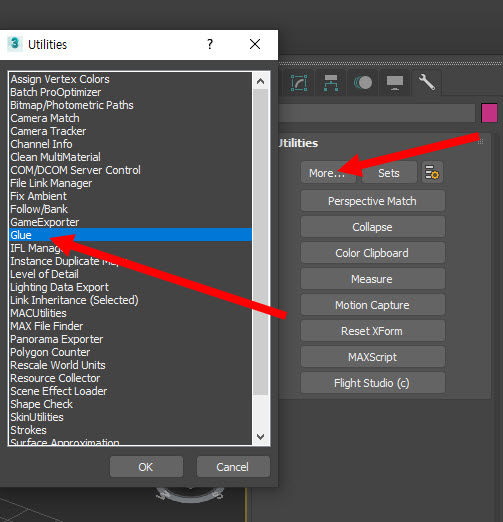 1)유틸리티(utilities)의 more에서 설치한 Glue 플러그인을 선택합니다.