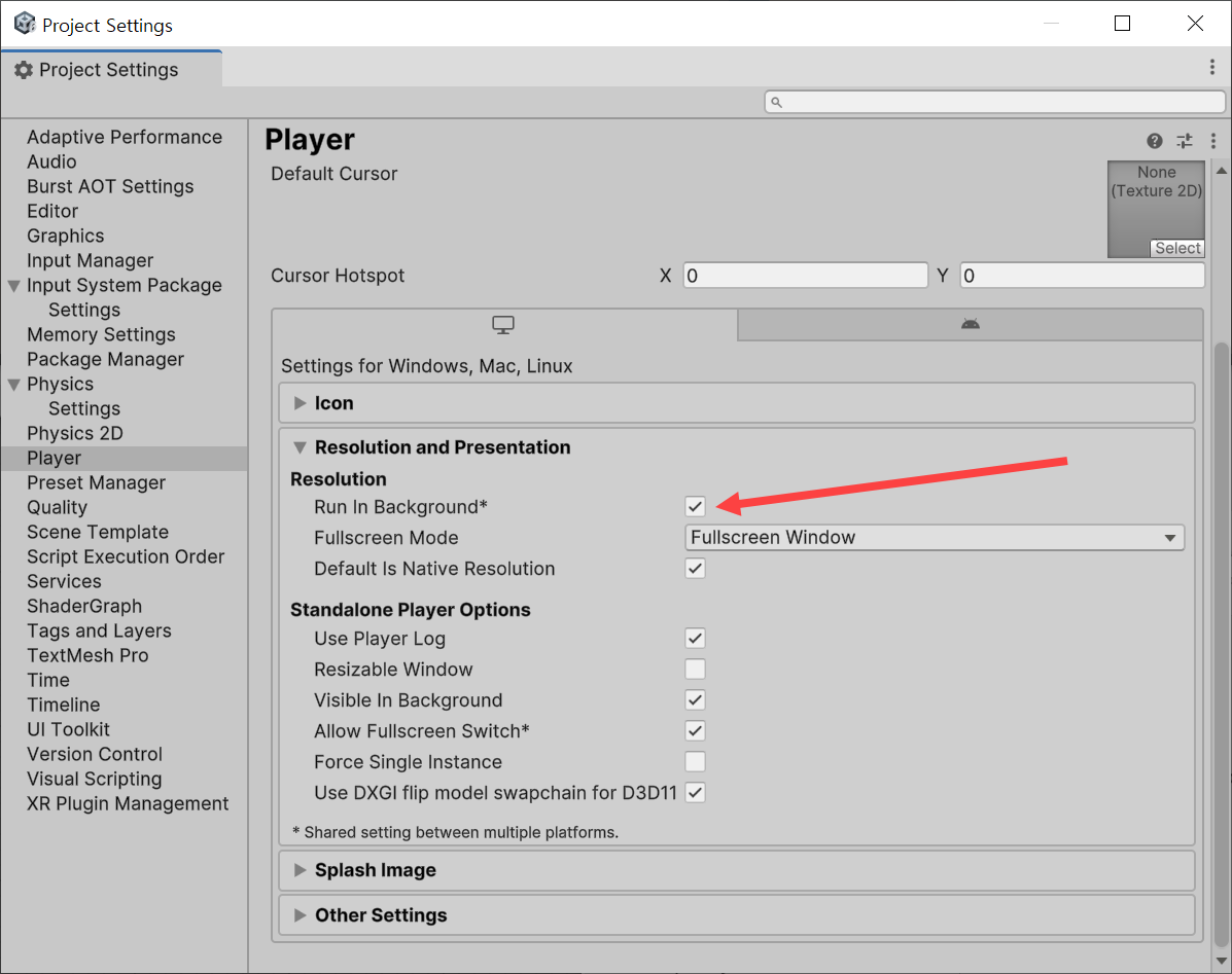 유니티(Unity) 에디터 및 게임 백그라운드 실행(Run In Background)