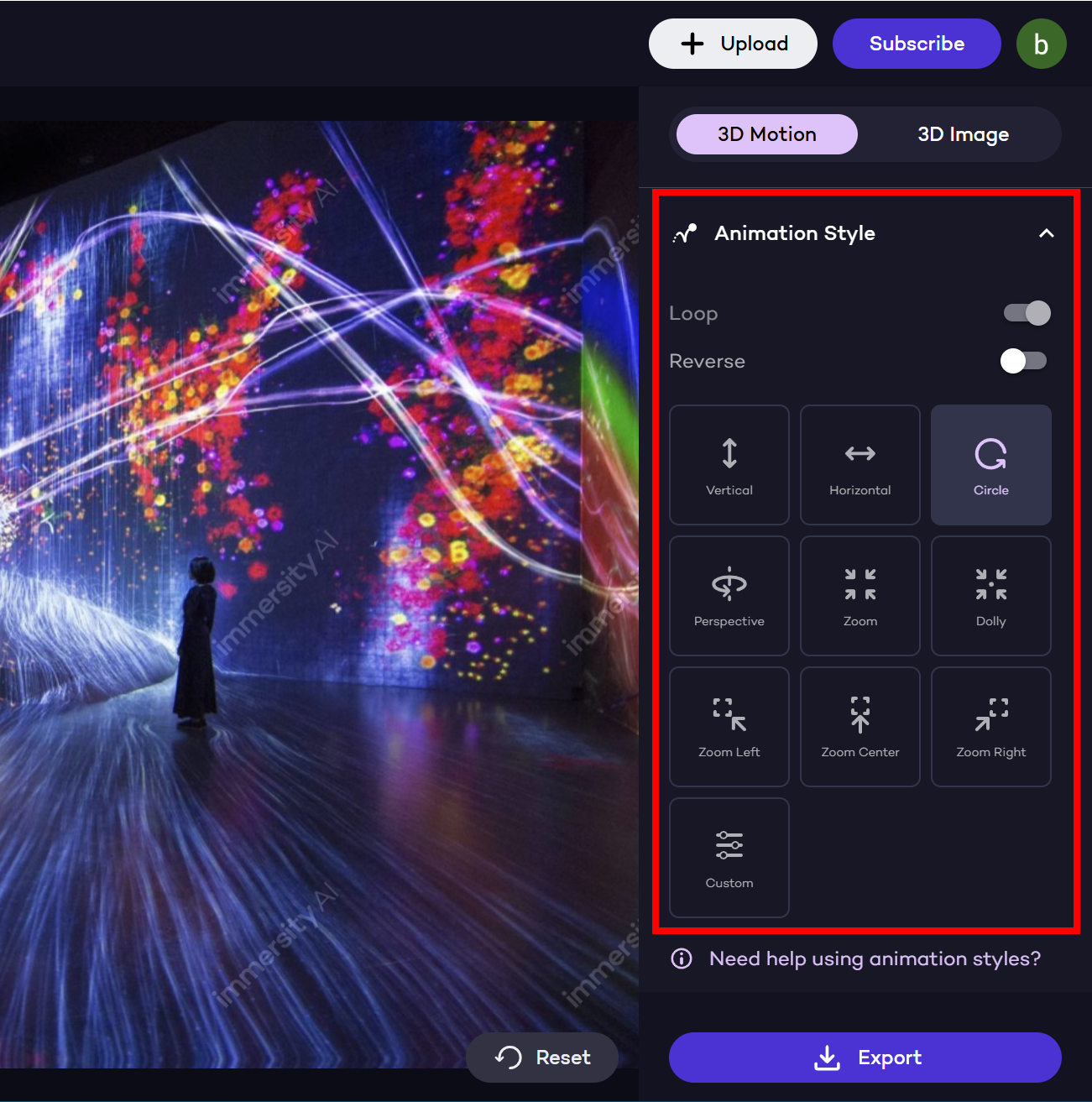 Immersity AI - 2D 정적 이미지를 3D 모션 이미지로 변환해주는 인공지능 툴