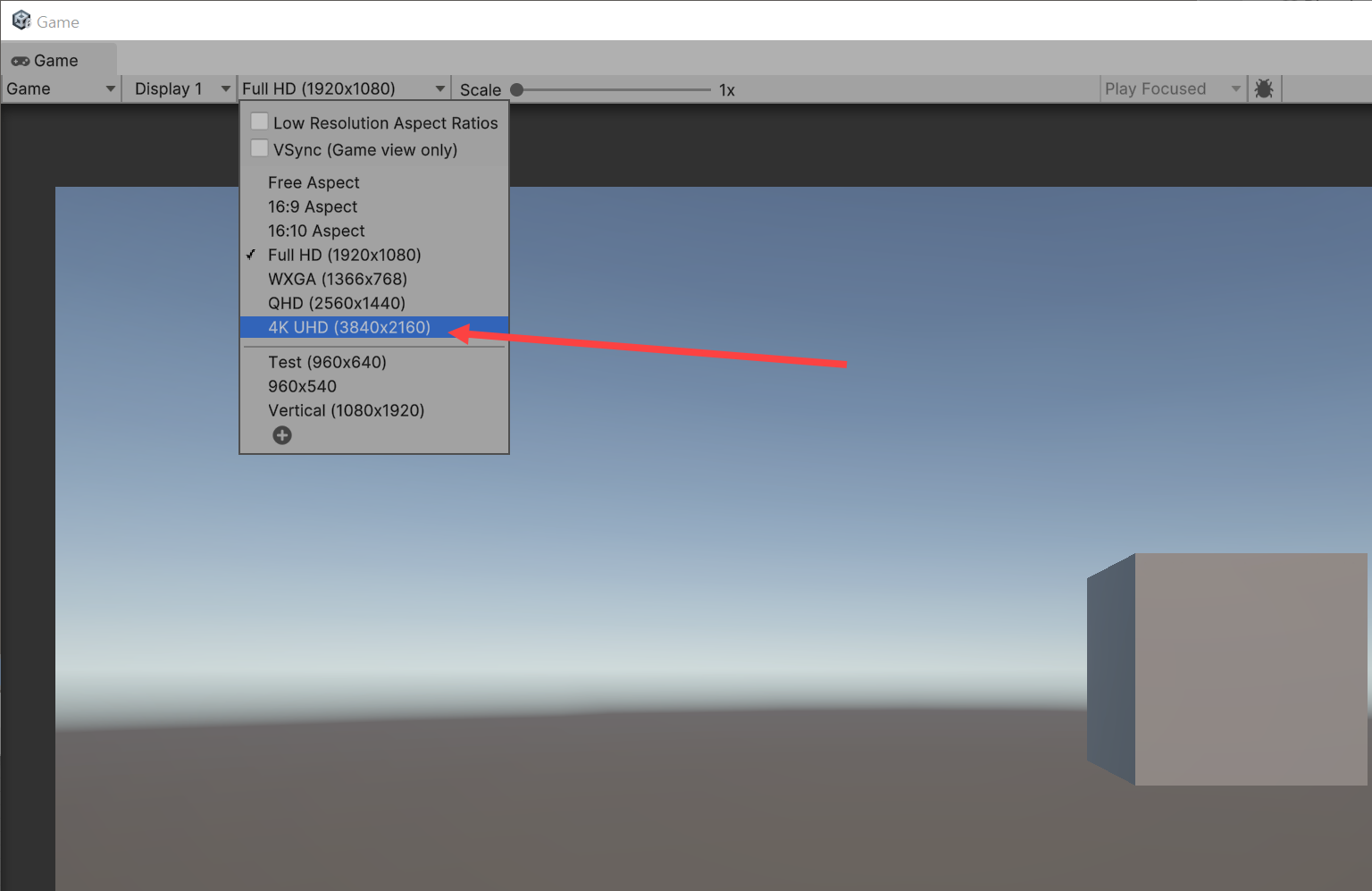 게임 뷰를 전송하려면 Game View를 선택합니다.