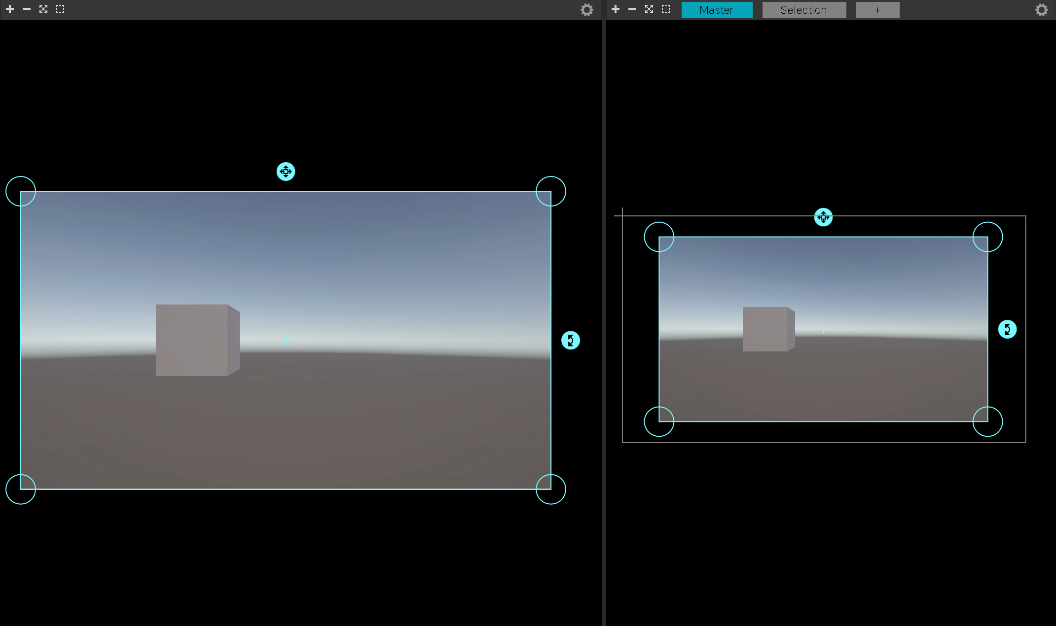 6)카메라 또는 텍스처를 전송하려면 Camera(또는 Texture)를 선택하고 소스 카메라(또는 소스 텍스처)를 지정합니다.